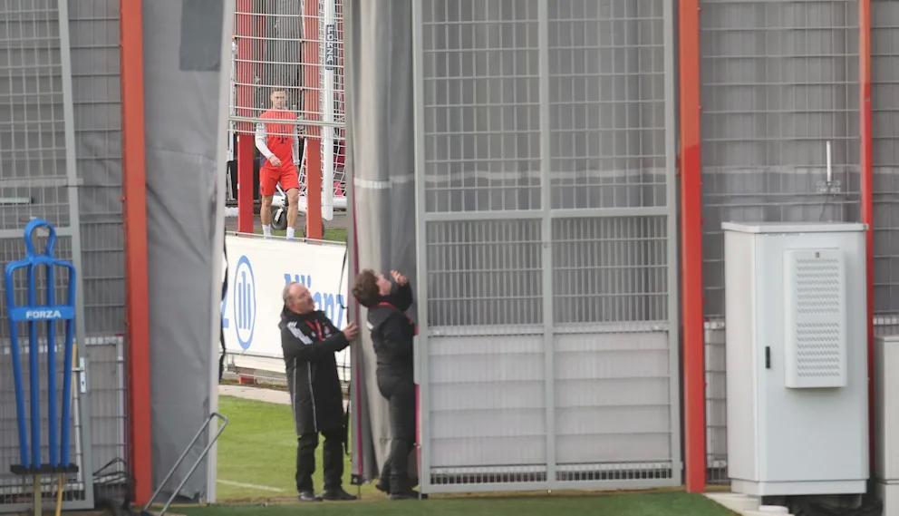 然而,仅仅三个小时后,情况便出现转折。《图片报》在13:55拍到基米希与队友一同从更衣室走向塞本纳大街训练场,基米希看上去专注且状态积极。但当俱乐部工作人员注意到训练场一角可被外界看到时,迅速拉上了最后一段不透明幕布,围绕基米希的“捉迷藏”由此上演。